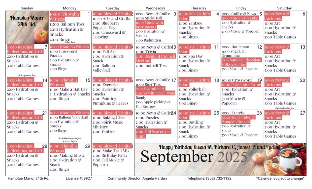 Scheduling a tour is easy! Plan a tour of our Memory Care Facility by visiting our website or call us at 1-352-261-0418. Our friendly and knowledgeable staff will gladly give you a tour, answer questions, and provide detailed information about our services and amenities.